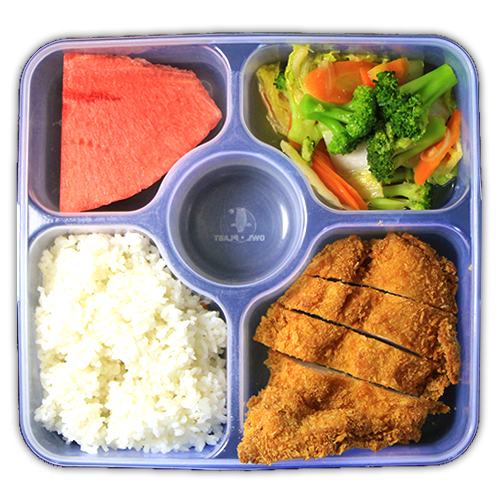 Served with String Bean, and/or carrots, white rice and fresh papaya.