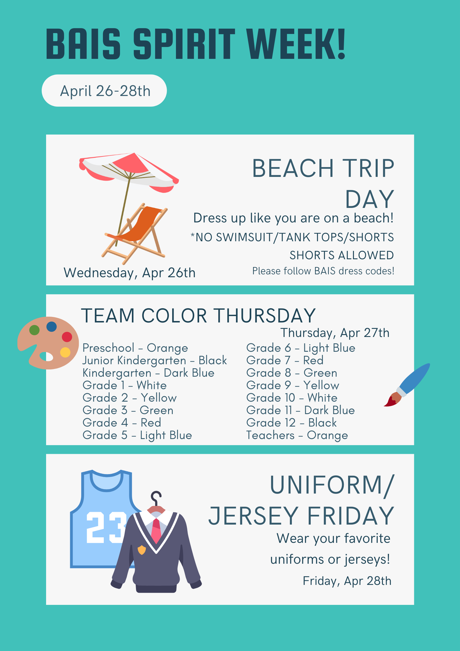 As many of you know, BAIS will be hosting the IISSAC swim/badminton/cross country meet on the 28th -30th of April. With students, parents and teachers arriving from 5 other schools to compete. This is a big event and we need your assistant!