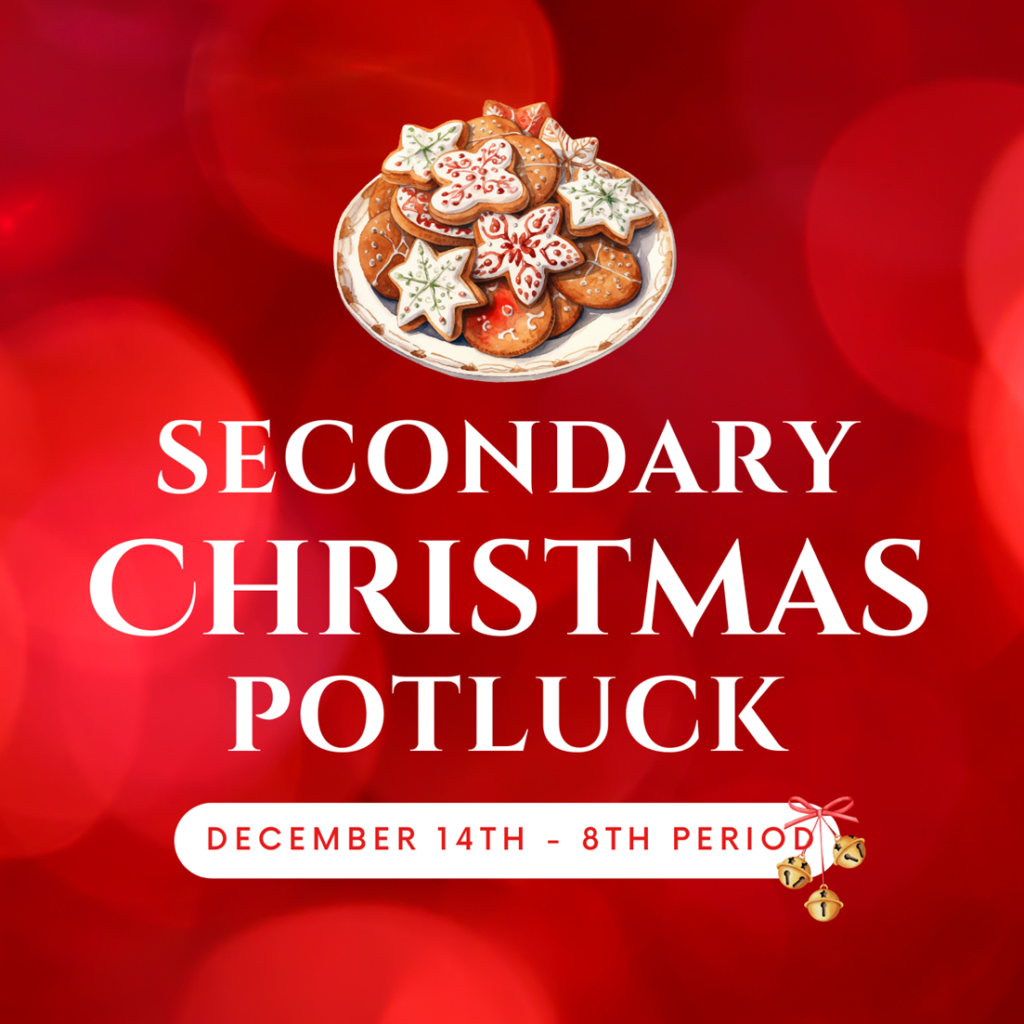 December 14th will be the school-wide Christmas Chapel for all students. Immediately following the chapel service, Middle & High School Students will enjoy a potluck in the pavilion, Secondary Students are encouraged to bring a Christmas treat to share.