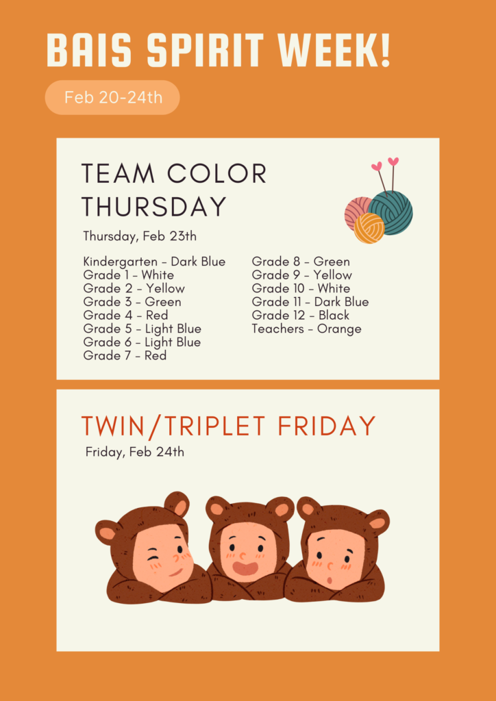 As we are planning the upcoming storybook day next week, we noticed that one of the spirit week themes is Character Wednesday. With that in mind, we will move Storybook Day to Wednesday, February 22 instead of Thursday, February 23, to avoid having to dress up as characters twice within a week.