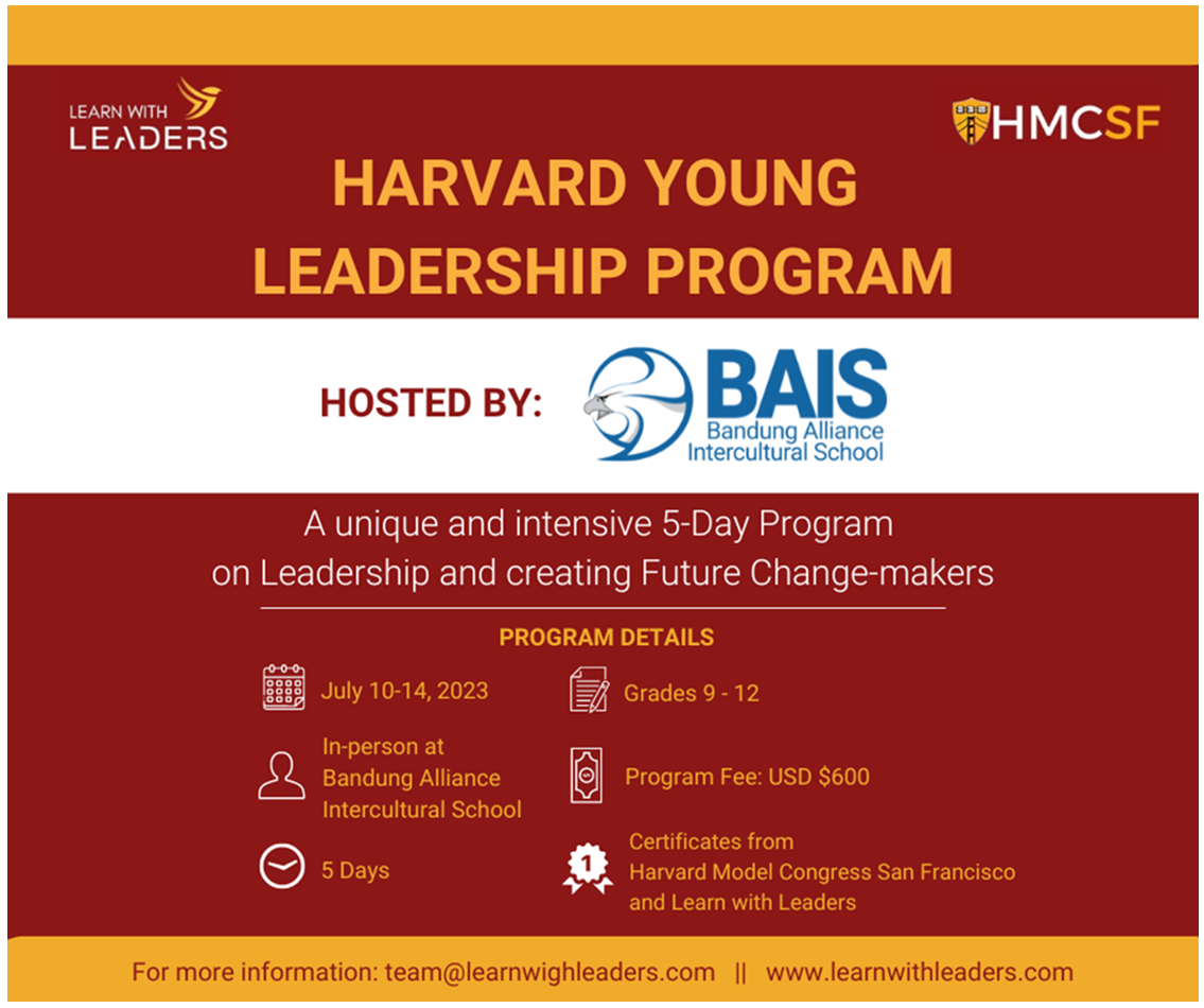 In July, BAIS is planning on hosting a 5-day intensive leadership training program run by the Harvard Model Congress San Francisco at Harvard University. The goal of Learn with Leaders is to provide an Ivy League experience for students globally at an affordable cost. During this 5-day intensive, current grade 8-12 students will be challenged to apply concepts of design theory in order to solve a real world problem. To do this, they will learn both how to lead and how to collaborate with others to creatively and critically approach problems. They will participate in workshops and receive guidance from the mentors as students work in groups to shape their solutions and then present their final presentations. There will also be sessions on College Admissions and a how-to session on building portfolio, resumes, and applying to Ivy Leagues.