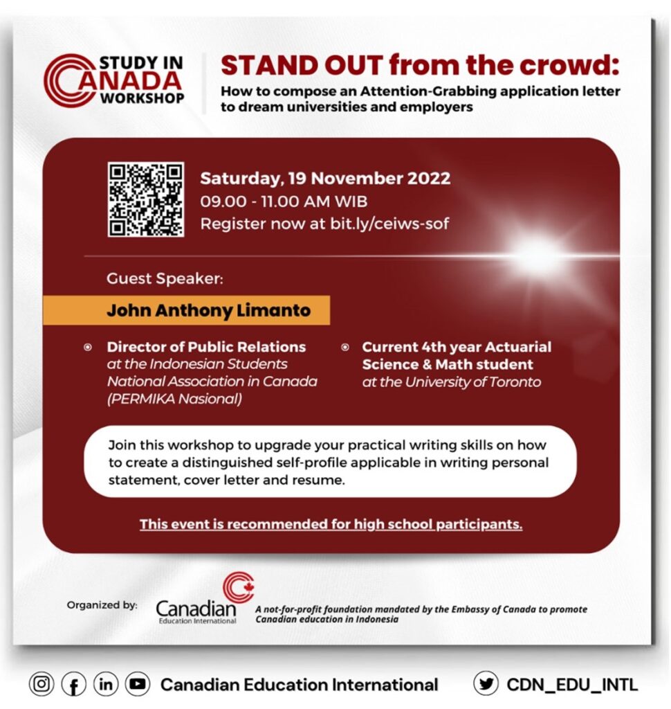 Study in Canada Workshop – STAND OUT from the crowd: How to compose an Attention-Grabbing application letter to dream universities and employers