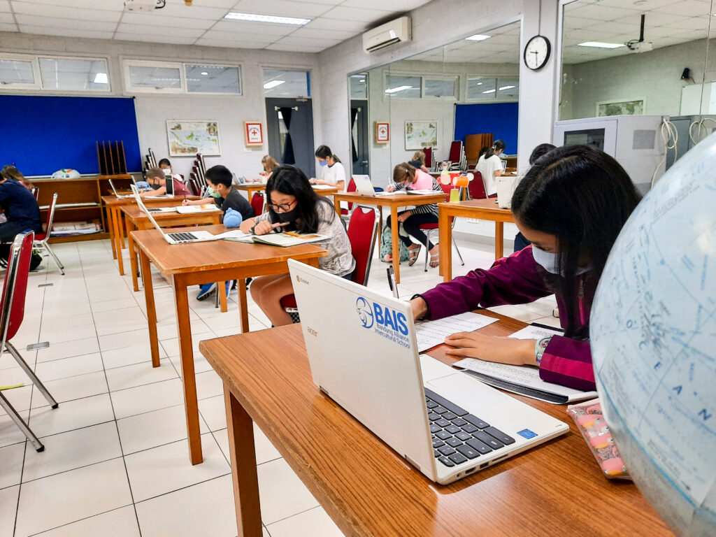Students stayed in one classroom whilst the teachers visited them according to the 6th Grade schedule. This allowed them to utilize Powerschool as guided by the teachers, accessing and submitting their daily tasks and assignments for those classes on that day, as they are expected to do online at home. All involved wore a mask at all times, and frequently washed or sanitised their hands whilst observing social distancing rules. Students also got to experience their first Homeroom class meeting where they heard from a Student Council Representative about this year’s Student Council games and competitions that will be held online.