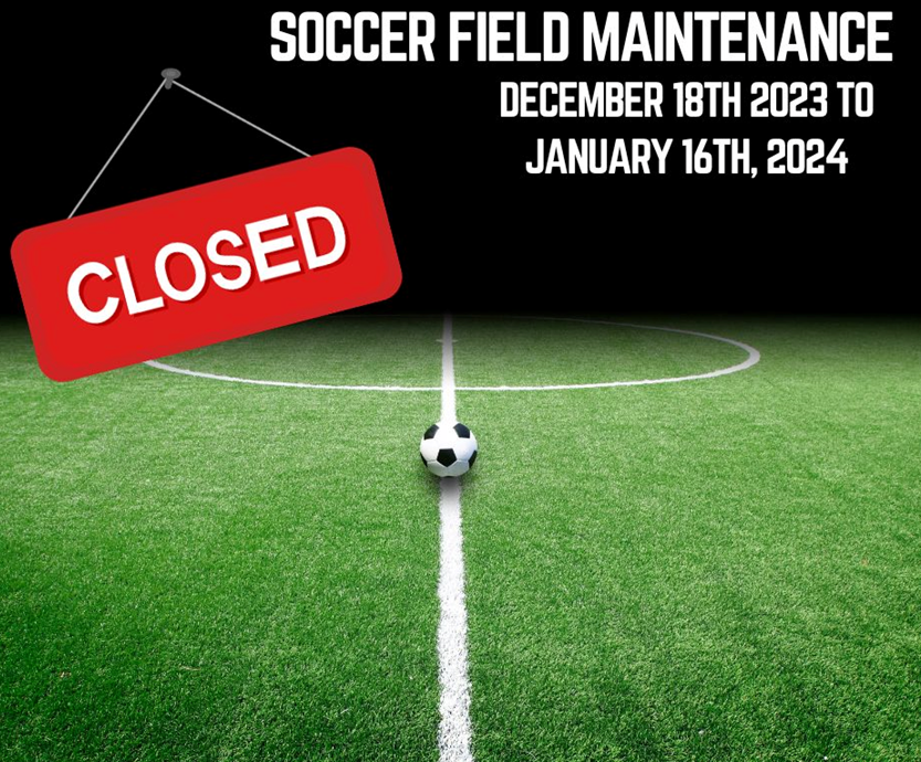 Soccer field will be closed for any activities starting on December 18th 2023 to January 16th, 2024 due to the regular maintenance.