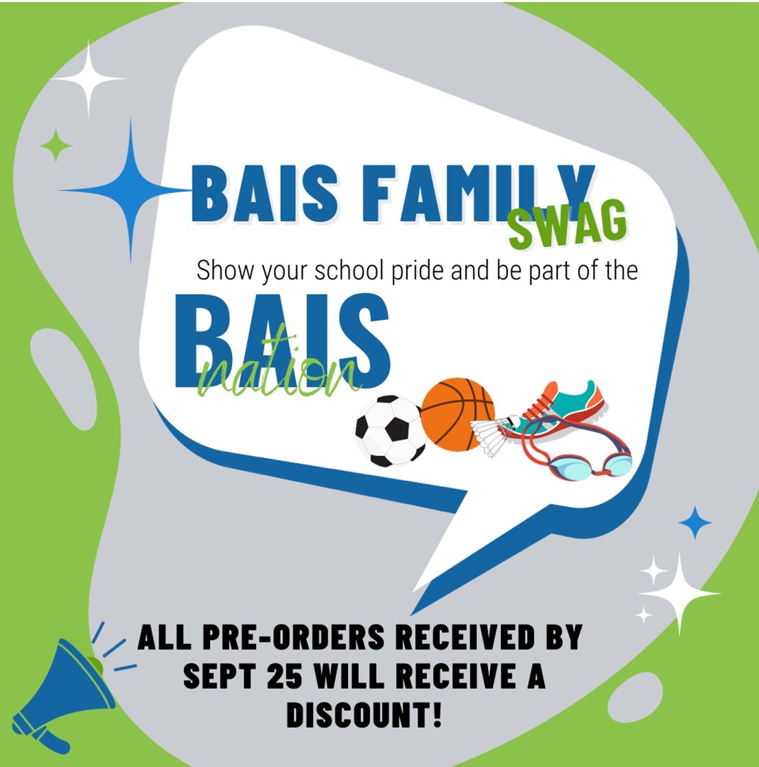 The LONG awaited for BAIS SWAG is now available! We have a special deal for all of you who order your gear BEFORE September 25. You are going to want to get these shirts and hoodies to represent BAIS at all the sports games and cheer for our BAIS eagles with pride!
