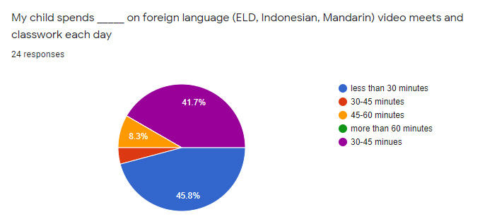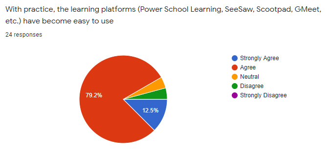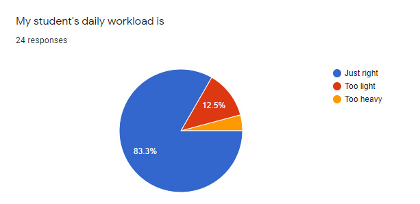 Thank you to those who took the time to fill out our recent parent survey of online learning. Here are a few of the elementary highlights: