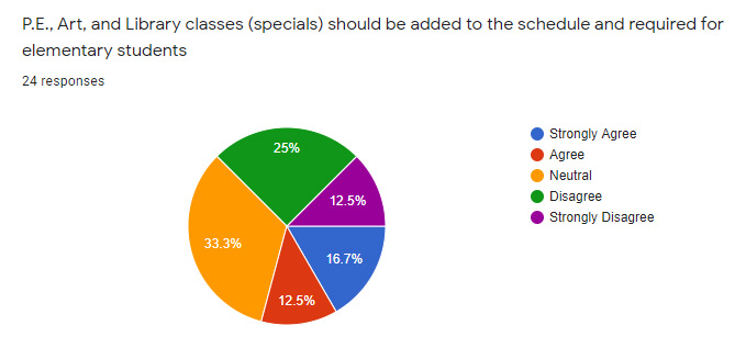 - The addition of required specials (PE, Art, Library, Music) is still being evaluated by the administration