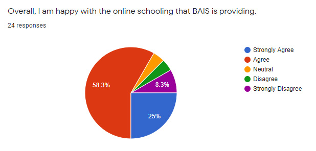 As mentioned in a BAIS blog post which I wrote a couple of weeks ago, no matter how fervently our teachers try, they will never be able to offer a virtual school day that meets the exact needs of every family or student, nor recreate a typical 7-hour school day online. When a percentage of families asks for less screen/video time, another is asking for more. While one group is asking for more paper/pencil work, another requests less. Our goal is to meet in the middle and serve our students and families as well as possible. Please know that our elementary teachers are working extremely hard to daily ensure your students are well cared for and known. I am extremely proud of our teachers and students for their diligent work.