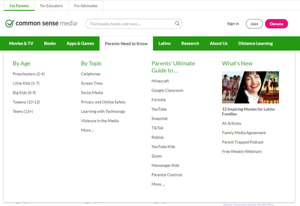 Common Sense Media has a lot of good information for parents, for example current movie reviews on what movies are appropriate for your child based on their age. It also has information on games that your children are playing online and if those games are age appropriate for them.