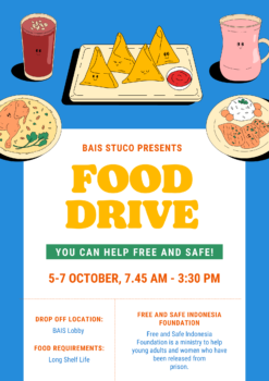 This year for SEW we are partnering with the Free & Safe Indonesia Foundation for a “Rice-ing Together” program. We are asking BAIS students to donate rice and other non-perishable foods. StuCo will have collection boxes set up in the lobby during SEW. These food donations will be used to feed families and children in need through the FSI ministries.