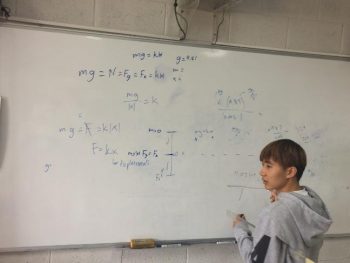 Haram receiving data from a classmate, entering it into a complicated formula, and discovering Hooke’s Law.