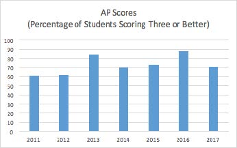 This last chart indicates the percentage of BAIS students who score a three or better on AP exams. The CollegeBoard standard is that students who score a minimum of three are ready for university level courses in the same subject area. In September, all AP teachers were given an analysis of their students’ exam results indicating specific areas of deficit. From this data, they were able to make adjustments in lesson planning and curriculum. I am very excited to see how these adjustments positively impact student performance on their exams in May!