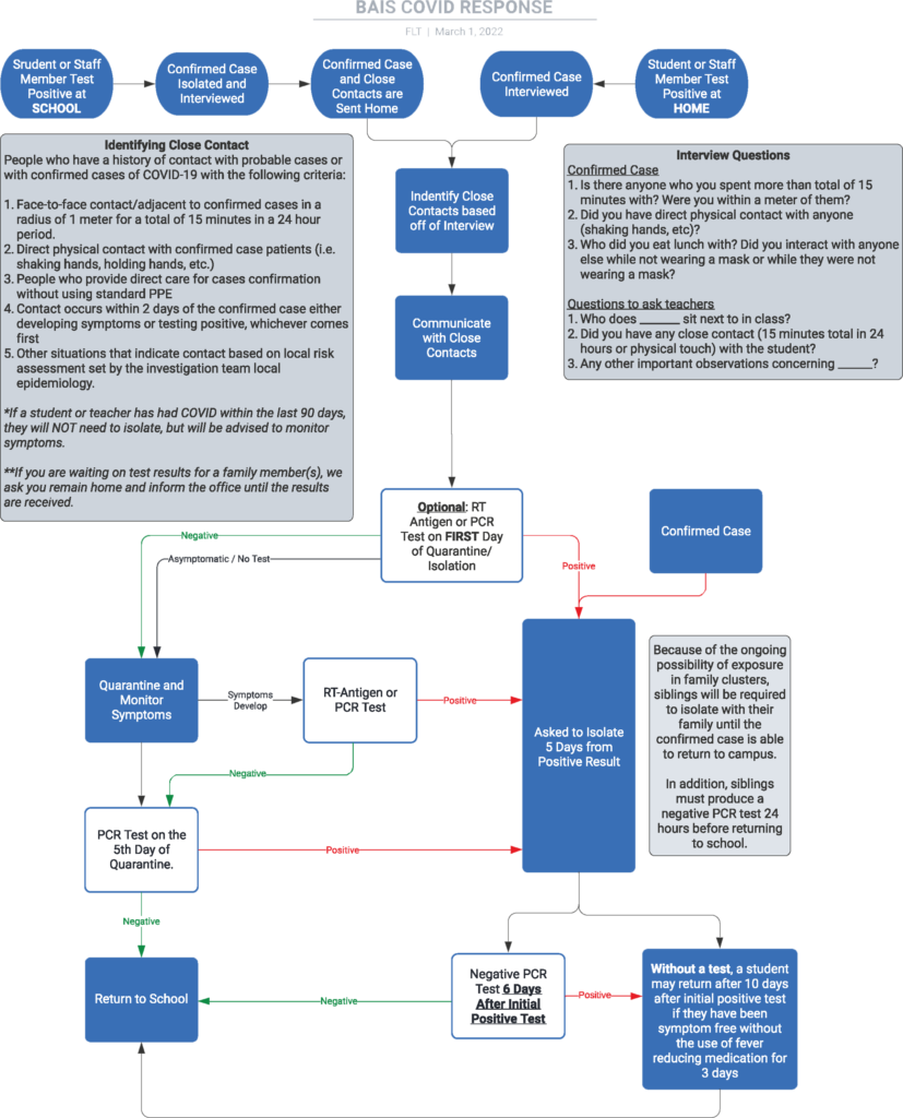 In light of the recent wave of Omicron cases and new guidelines being passed down from the Health Department, the leadership team at BAIS has been updating our COVID-19 protocols. We praise God that despite having several cases on campus, there seems to have been little spread of the virus at school – in fact out of the hundred or so close contacts that were identified under our previous protocols, only two additional students outside of family clusters tested positive. For both of these, it was questionable if transmission actually occurred on campus.
