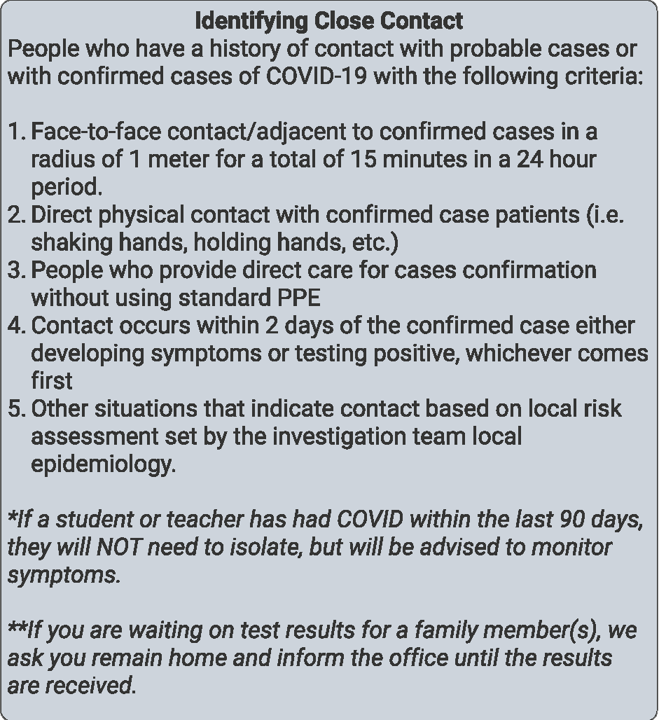 So, we thank God for his merciful protection and we thank you all for your vigilance and cooperation. It is therefore our desire to more narrowly define and identify close contacts and minimize disruptions to learning.