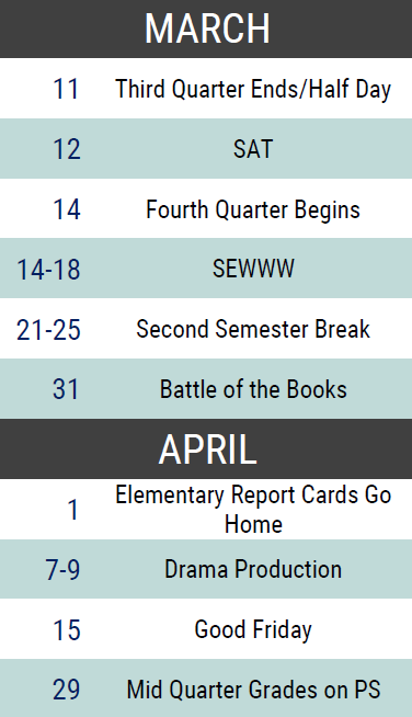 When you see them around campus or the Google meet – make sure to give them a covid-high-five. Please be praying for the rest of the 12 grade class as they are either working or on waiting for responses to applications.
