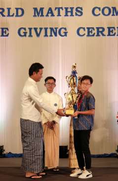 Jeremy Budijono won the Gold Medal and 1st place champion at the Sakamoto World Math Competition in Yangon, Myanmar on April 6, 2019.