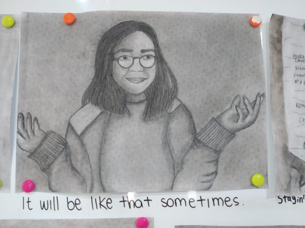 Art lets me puts down ideas onto the canvas or wherever I am expressing creativity. Art also helps me to relieve stress because of how I focus on expressing my creativity/feelings onto the paper. –Bryan (11th grade student)